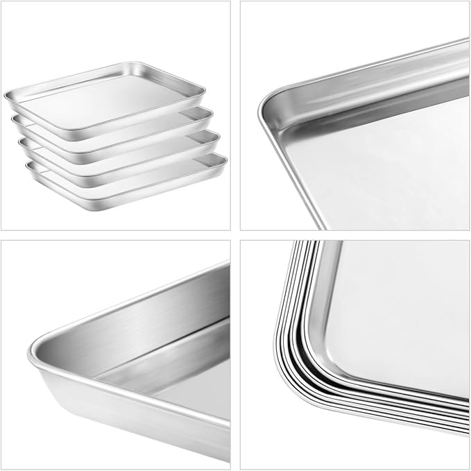 Baking & Cookie Sheets Set of 4, Yododo Stainless Steel Compact Toaster Oven Pan Tray Ovenware Professional, Size 10.23 x 8.26 x 1 inch, Heavy Duty, Deep Edge, Superior Mirror Finish, Dishwasher Safe