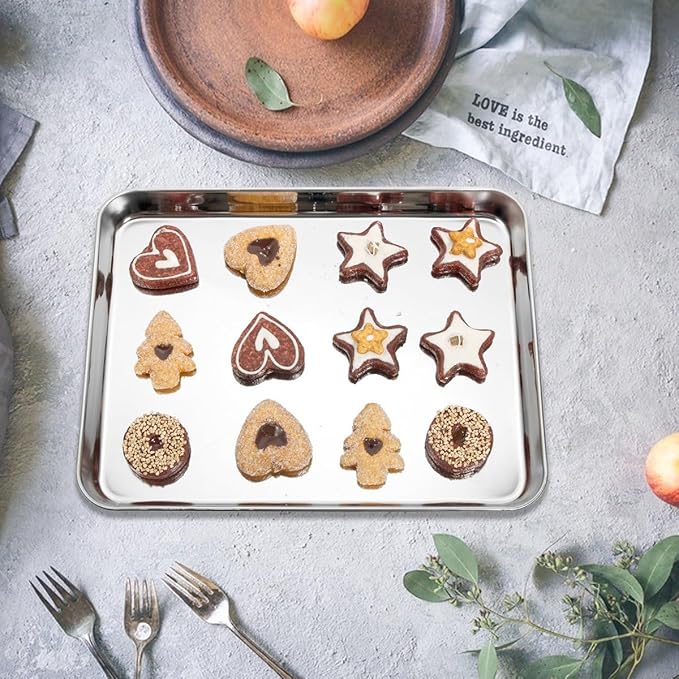 - EXQUISITE DESIGN: Superb mirror finish surface, sturdy and shiny baking sheet with heavy duty design, does not warp and is dishwasher safe, rust resistant and durable for long time
