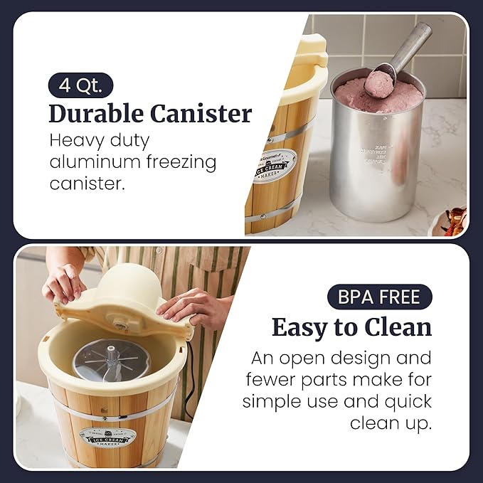 Elite Gourmet Maxi-Matic EIM-924L 4 quart Old Fashioned Electric Ice Cream Maker, Pine Bucket