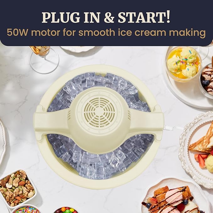 - NO MANUAL EFFORT NEEDED: A powerful electric motor-driven paddle does all the churning to whip to a creamy consistency in minutes, no more intensive stirring or manual effort required.