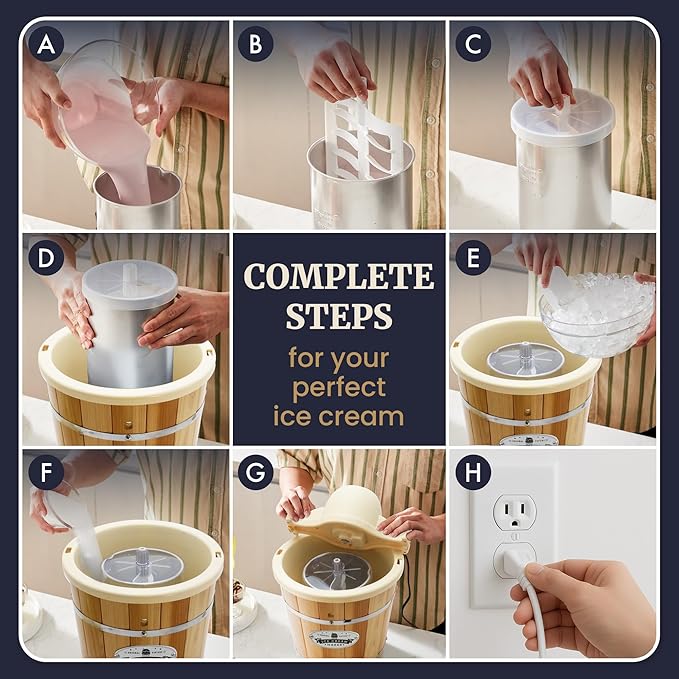- EASY 3 STEP PROCESS: 1) Mix your favorite ingredients and place in canister, 2) assemble the unit and add ice + rock salt, 3) plug in and turn On.
