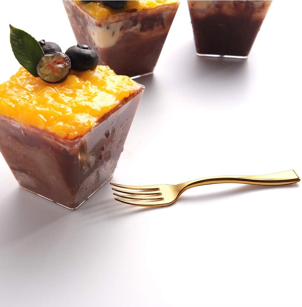 - ELEGANT DESIGN: Mini forks finished with gold coating, our miniature utensils have that real gold look, just like real silverware. Your guests won’t know the difference between these heavy-duty gold plastic utensils and real polished steel ones.