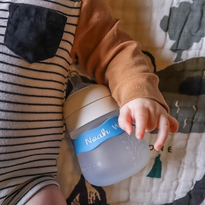 - VERSATILE FIT: Designed to fit the traditional 4oz baby bottle, but can be stretched to fit most sippy cups, water bottles, or even shampoo bottles for summer camp. It's the baby bottle name label designed to grow with your child & is a perfect daycare label & preschool label as well.