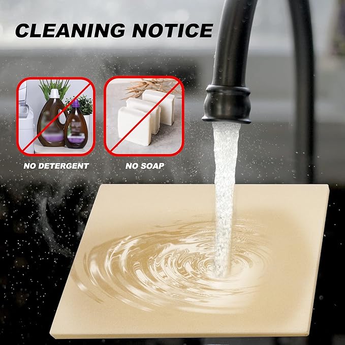 - How to Clean: Before cleaning, scrape off excess food with a spatula. Allow the stone to cool, then rinse it with warm water. Never use soap or detergent on the stone. The stains, caused by grease and bread crumbs, will not affect the performance or function of the cordierite pizza stone.