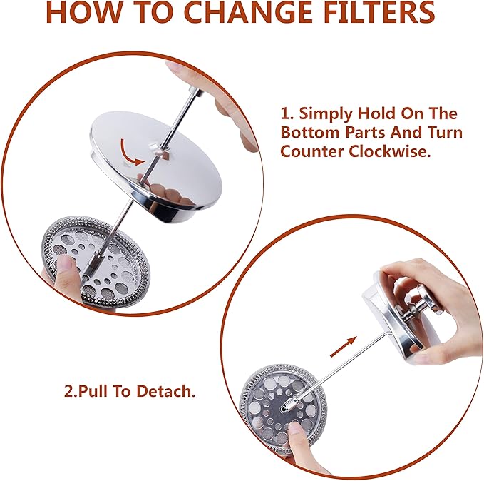 - 4 RUST RESISTANT & DISHWASHER SAFE-- This Magicafé FRENCH PRESS COFFEE MAKER is designed to rust-proof and durable for use. With the 18/8 premium stainless steel, it is rust resistant,sturdier and easier to clean. All parts of the french press coffee maker are dishwasher safe.