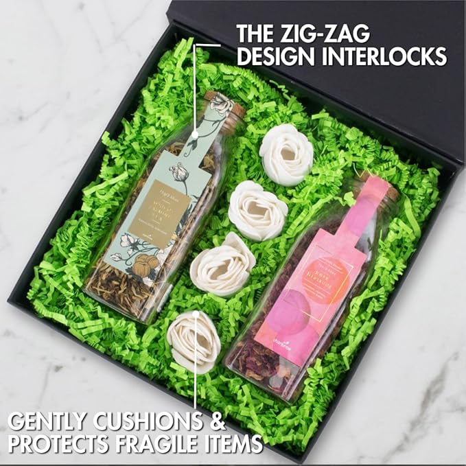 - ENDLESS CREATIVE POSSIBILITIES: From gift stuffing and gift box stuffing to filling shredded paper for gift baskets, the vibrant, crinkled texture is perfect for adding a decorative touch to any occasion. Use as basket filler or package filler to enhance your gift-giving experience.