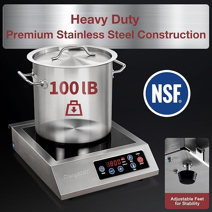 - CONSISTENTLY STABLE HIGH-POWER OUTPUT - Built for constant use, it features continuous-duty circuitry for non-stop cooking. The unique power control technology ensures stable high-power output, reduces the temperature of internal electronics, and facilitates low-noise heat dissipation, providing reliable cooking performance. This dependable performance sets it apart from others. Designed for large-volume usage, ChangBERT induction cooktop is perfect for busy commercial kitchens.