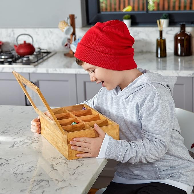 - Natural Bamboo: Bamboo tea storage organizer and multi-functional storage box for all types of small items and useful for all home needs. It's more grounded and sturdier than wood, and ecologically well disposed of.