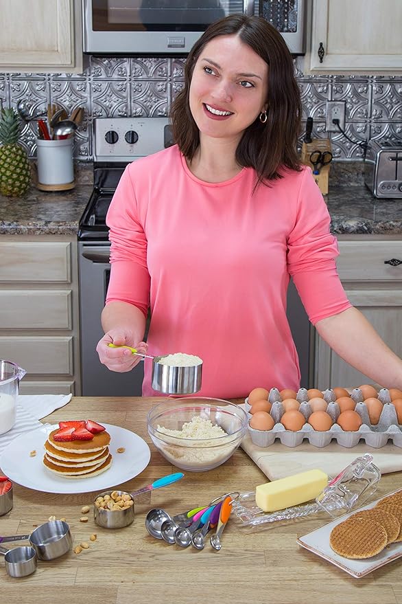- EASY CARE: The stainless steel measuring cups and spoons set (10pcs) is dishwasher safe. The transparent plastic measuring cup is hand wash recommended.