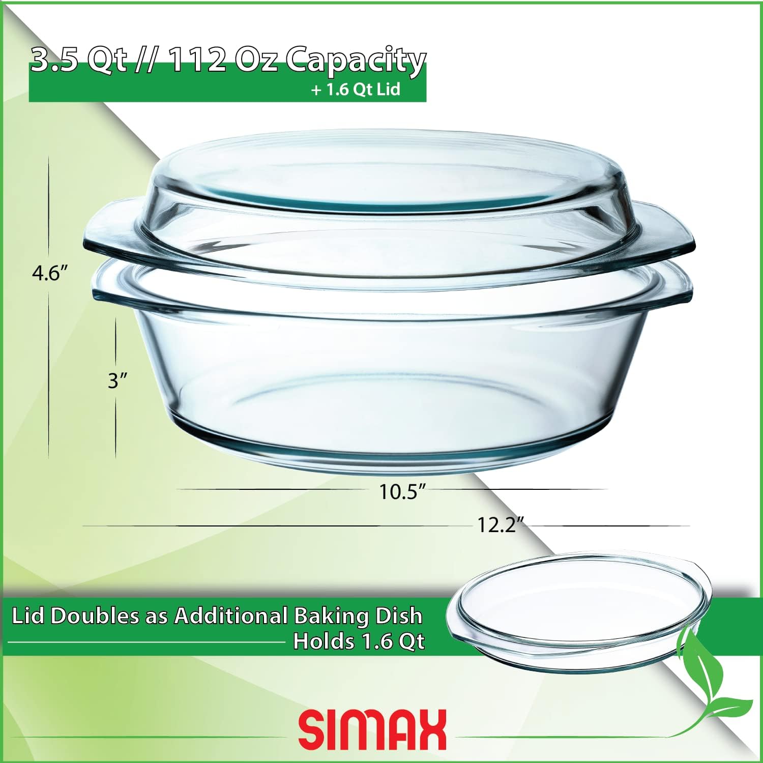 Simax Casserole Dish with Lid, 3.5 Quart Round Glass Casserole Dishes for Oven with Lid and Handles, Baking Dishes for Oven, Covered Bowl for Cooking, Baking, Serving, Microwave, Dishwasher, and Oven Safe Cookware