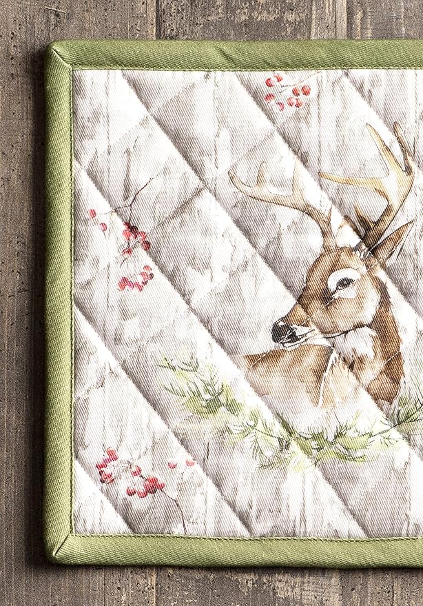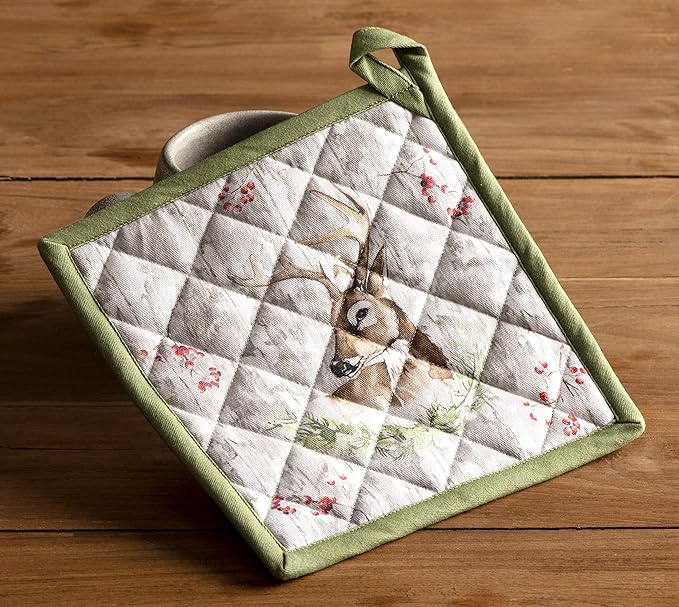 Maison d' Hermine Pot Holders Set 100% Cotton Heat Resistant Potholders 8" x 8" Hot Pads with Loop BBQ, Cooking, Baking, Grilling, Kitchen, Handling Hot Pans (Pack of 2, Mountain Life)