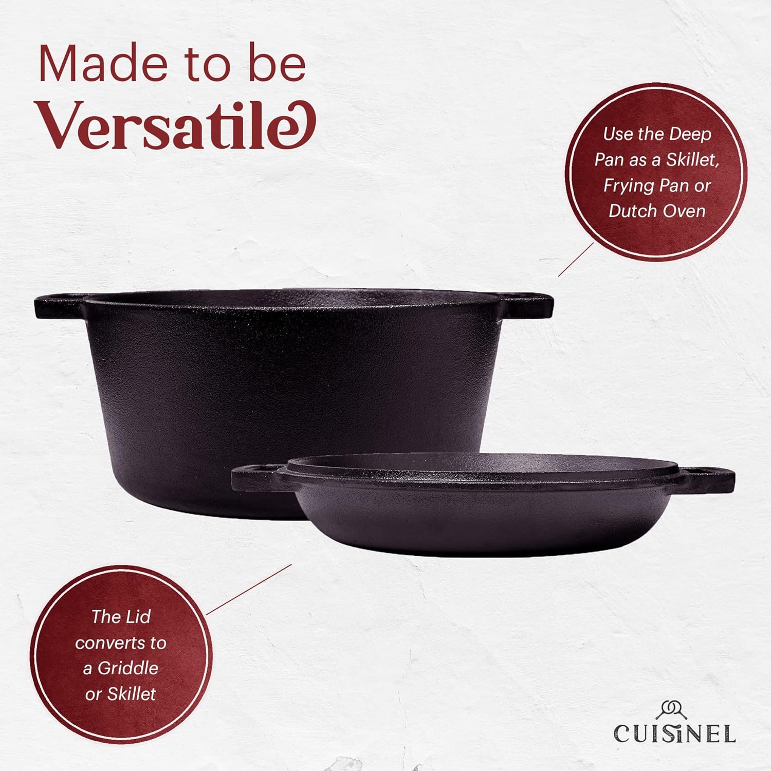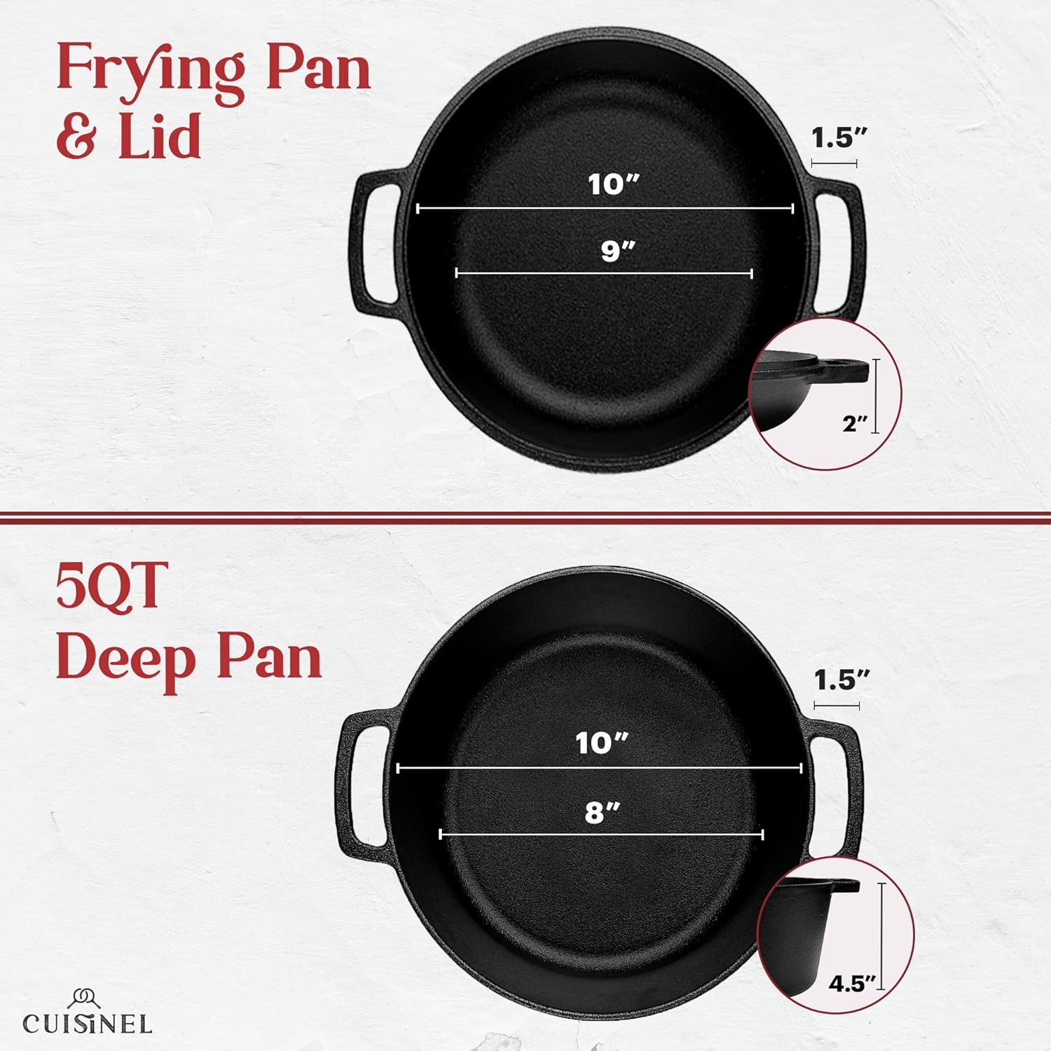 Cast Iron Double Dutch Oven - Pre-Seasoned 5-Quart Set – 2-in-1 Multi-Cooker: 5-Qt Deep Pot + 10" Skillet - Frying Pan Converts to Lid of Combo Dutch Oven – Grill, Stove Top, BBQ and Induction Use