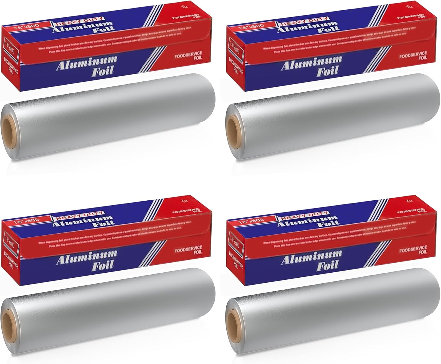 Aluminum Foil Wrap | Heavy-Duty, Commercial Grade for Food Service Industry | Silver Foil for Cooking, Roasting, Baking, BBQ & Parties | 18"x 500 feet (4 Pack)