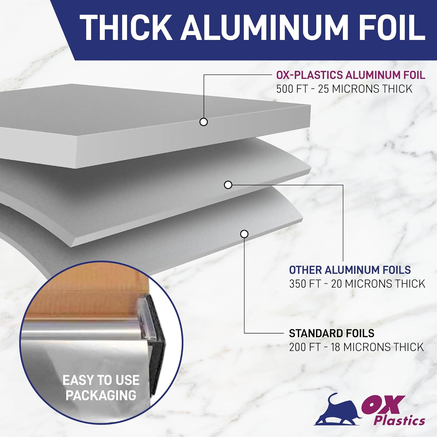 - Strongest Silver Foil In Bulk: Choose From Different Pack Sizes So You Can Get More Foil For Less When You Get More In Bulk! Aluminum Foil Wraps Are Strong, Tough, And High Quality As They Are Made In New York With Quality Resin. Ox Plastics Specializes In Creating The Strongest Aluminum Foil Wrap For Your Food Serves And Storage Needs. Heavy-Duty, And Commercial Grade For The Foodservice Industry.
