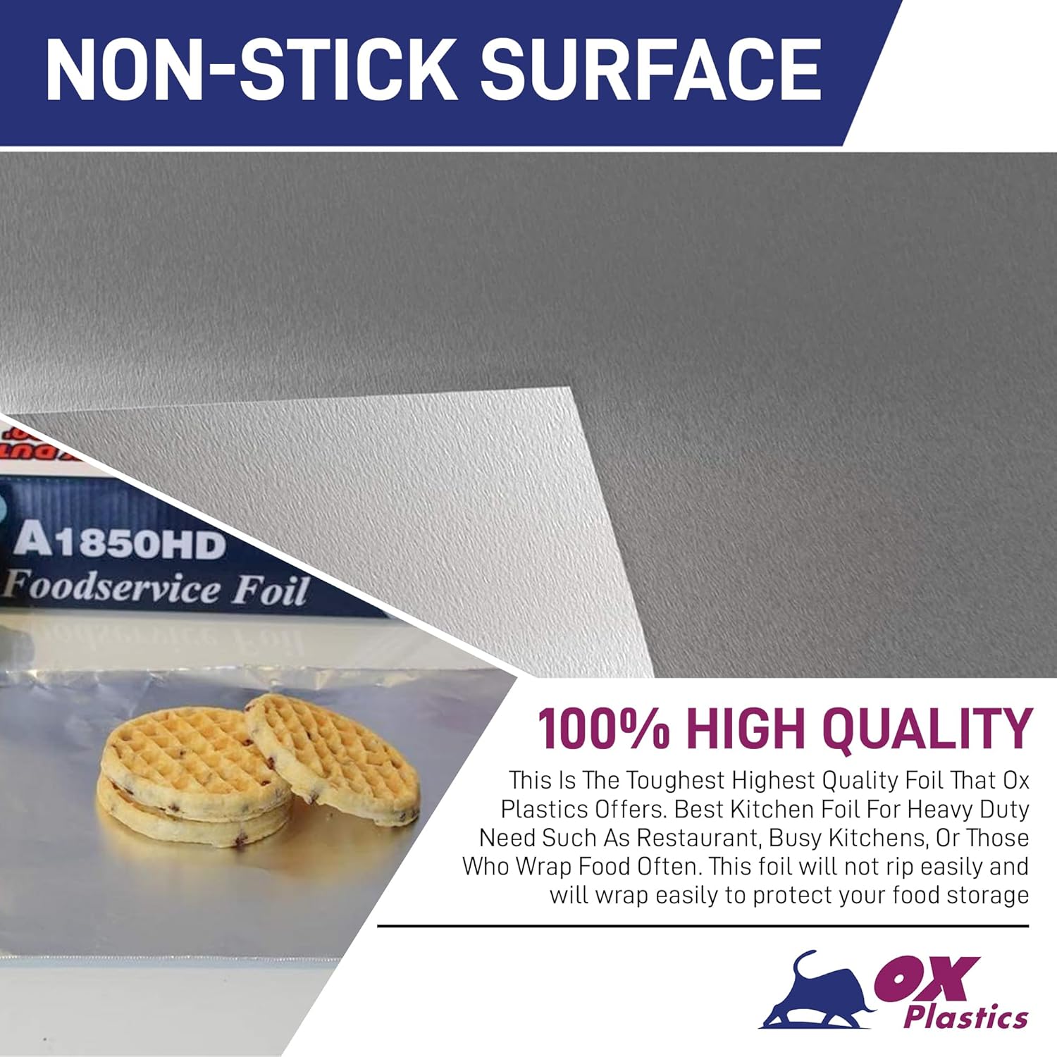 - Heaviest Duty Strongest Most Durable Foils: This Is The Toughest Highest Quality Foil That Ox Plastics Offers. Best Kitchen Foil For Heavy Duty Needs Such As Restaurant, Busy Kitchens, Or Those Who Wrap Food Often. This foil weighs is the heaviest duty thickest foil we stock. Don’t be fooled by other heavy duty claims, ours is the real deal. Foil will not rip easily and will wrap easily to protect your food storage.