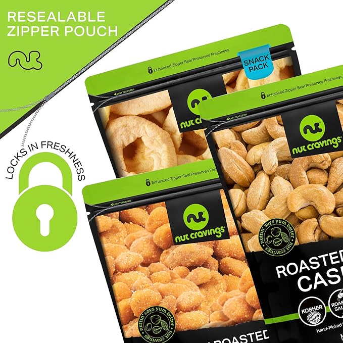 - TOP 'NUTCH' RESEALABLE BAGS: Our nuts and dried fruits come in reseleable bags that keep them as fresh and delicious as when they were handpicked by our farmers. In addition, our bags make it easier for you to snack on the go!