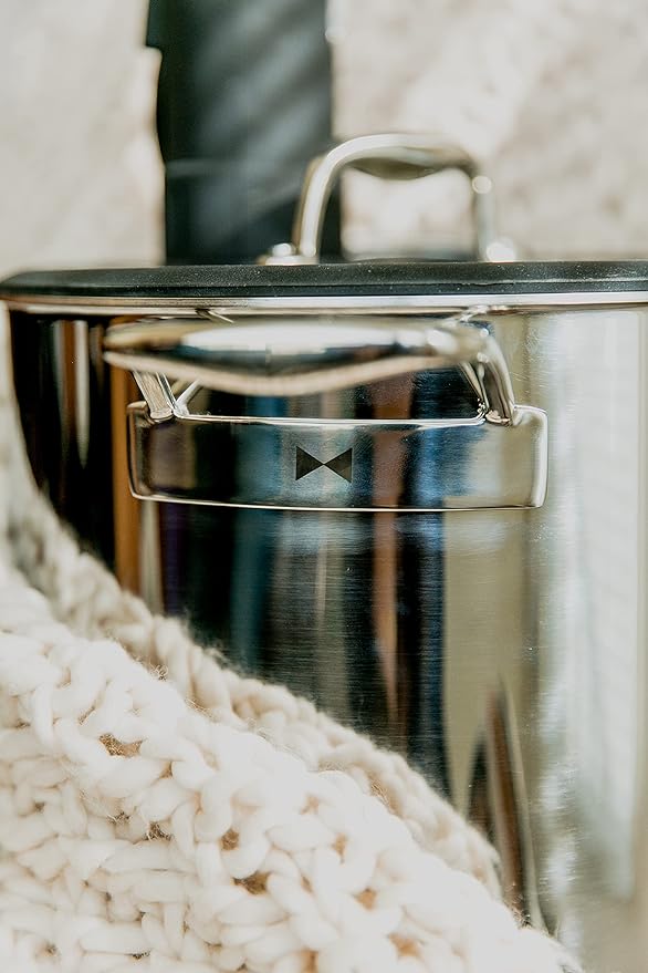 - 9. 8-Quart Tri-Ply stainless steel stockpot includes Measurement lines for easy measuring. Premium fine-grain polished stainless steel surfaces are easy to cook with, easy to clean.