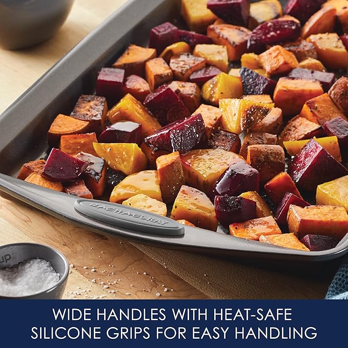 Rachael Ray Nonstick Bakeware Set with Grips, Nonstick Cookie Sheets / Baking Sheets - 3 Piece, Gray with Sea Salt Gray Grips