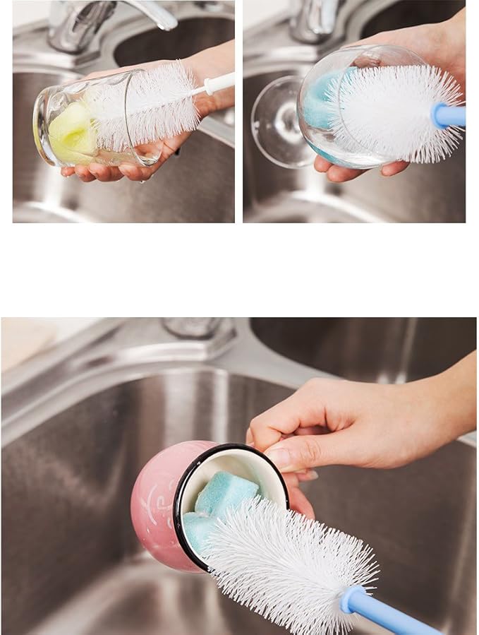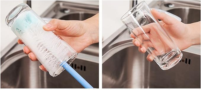 - HEALTH AND SANITARY HOUSEHOLD BRUSHES - suitable for narrow long bottle ,tall sports bottles, long cups, vases, vacuum cup, kettles, blenders, coffee pots, wine bottles,glass jars, vases, tea pots, water bottles, thermos, sauce jar,wine glasses and any Difficult to scrub the gap like the range hood