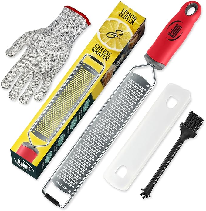 - INCLUDES PROTECTIVE KITCHEN GLOVE- Do you fear of cutting yourself while Zesting or Grating the last bits of produce? So did we, but not anymore! We started wearing a Protective kitchen glove while grating/zesting, so the glove gets the cut - not the finger... Since it worked so good for us, we decided to give it to each and every of our customers ! The glove is machine washable.