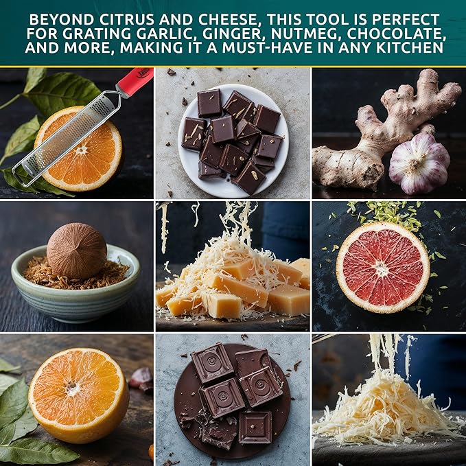 - COMFORTABLE TO USE AND BUILT TO LAST! - This Grater/Zester has an Ergonomic non-slip grip handle which will give you great comfort while using it. It will stay in brand new condition grating and zesting your food professionally to perfection.
