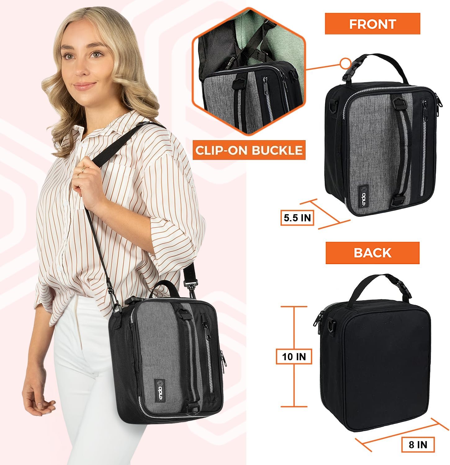 - VERSATILE GREY LUNCH BOX KIT: OPUX Gray simple lunch bag has 4 ways to use with two handles to carry horizontally and vertically; and a shoulder strap to carry the lunch pail on shoulder or across body. It is functional to students, teens, kids, boys, and girls. It's the perfect back-to-school, birthday, holiday gift, and the heavy duty lunchbox lunch bag for mens and womens for taking lunch food to work. This reusable and freezable lunch bag is designed for children and adults alike.