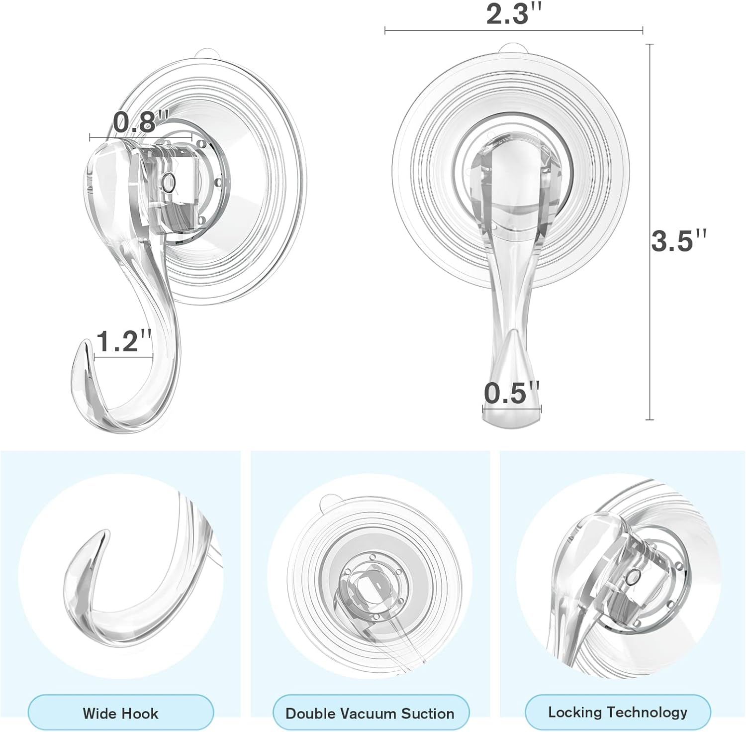 - Heavy Duty: Double vacuum suction cups creates stronger suction power; strong seal can holds up to 6.6 lbs, ensures it can work in different temperature indoor or outdoor; lock into place and stay put well, hold tightly without falling or sliding; the hook is large and curved, safer to protect items from slipping off, simple design yet meets versatile uses