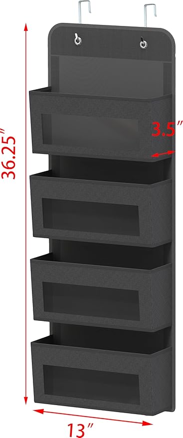 - Compact Design with Big Capacity: Measures 13" W x 36.25" H, with tapered pockets that are 4" deep at the top and 3.5" at the base. Ideal for vertical storage without taking up floor or shelf space