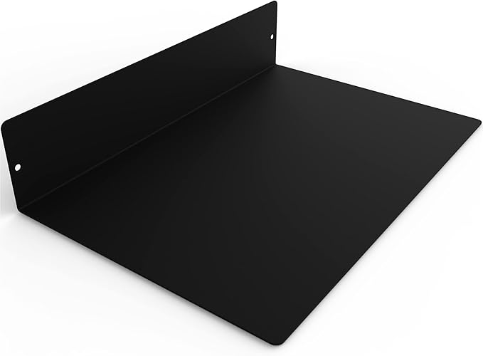 - DIMENSIONS & DETAILS: Measuring 12-inches long x 8-inches in depth, our steel floating shelf is made from 14 gauge raw steel and professionally powder coated matte black. The weight of the shelf is 2.5 LBS. It's perfect for displaying books, plants, bottles, picture ledges, and retail displays