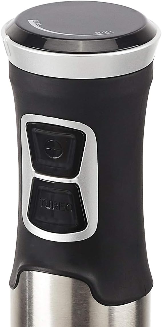 - Hand-held immersion blender for mixing soups, sauces, smoothies, and more