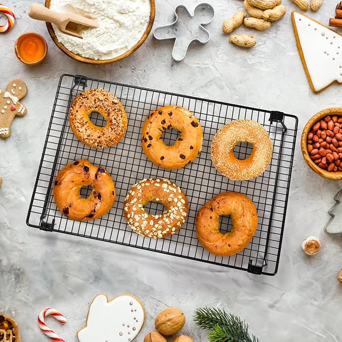 Kingrol 2-Piece Cooling Rack with Collapsible Folding Legs - for Cooking, Roasting, Drying, Grilling (Black)