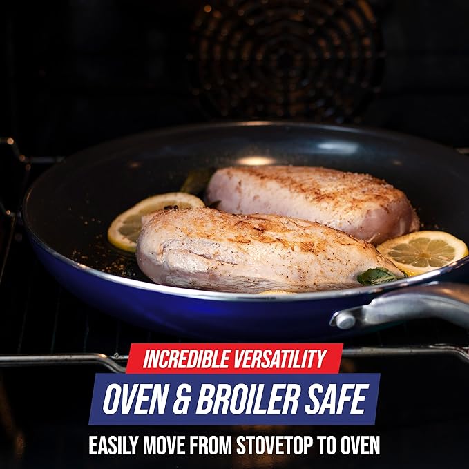 - DIAMOND-TOUGH EXCELLENCE: Metal utensil safe surface with diamond-infused ceramic nonstick - 5x harder and 10x longer lasting than traditional coatings. Tough enough for your toughest recipes