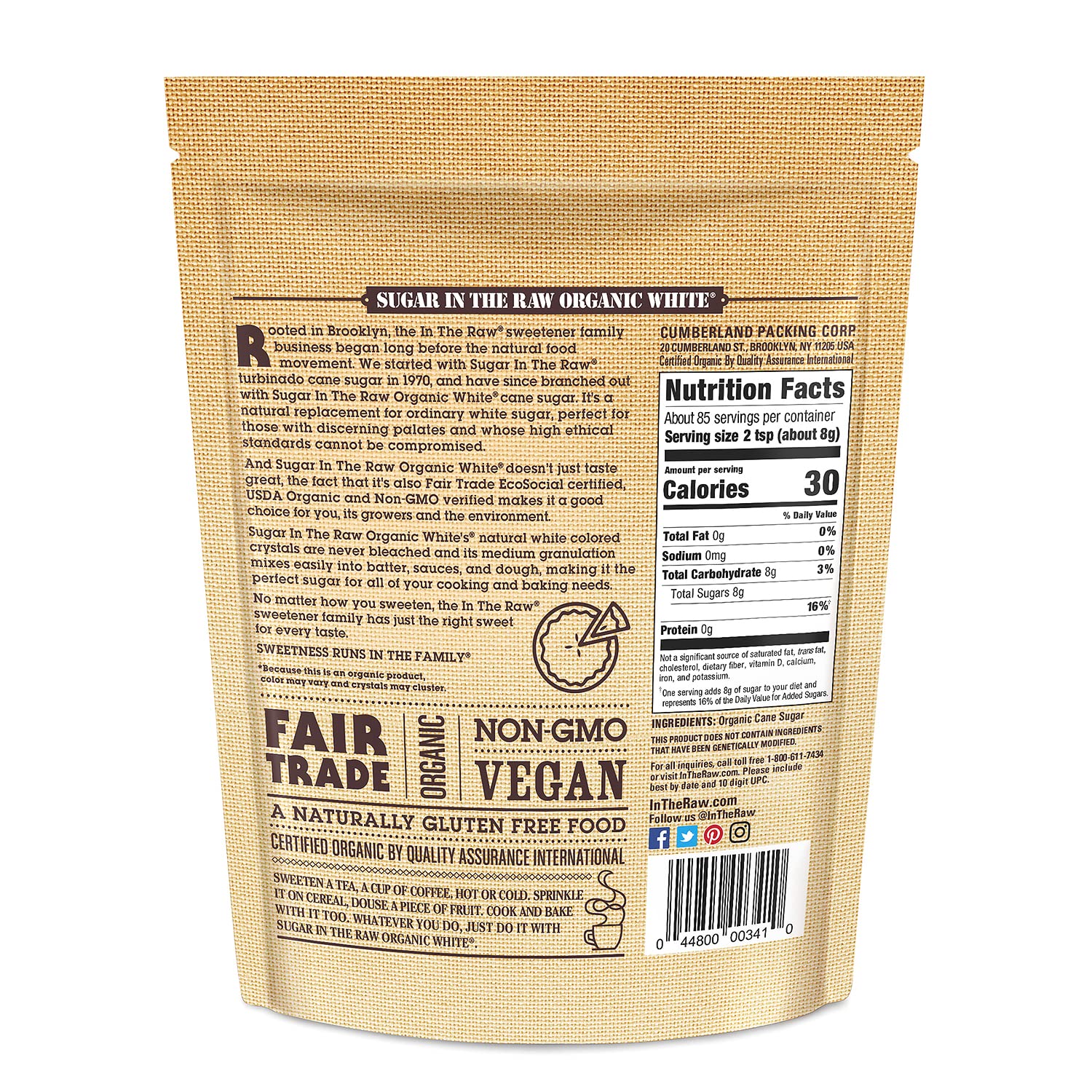 - FAIR TRADE CERTIFIED: Organic White Sugar In The Raw is Fair Trade EcoSocial Verified, produced with a focus on safe working conditions, environmental protection, human & workers' rights, fair price, and equitable relations with producers.