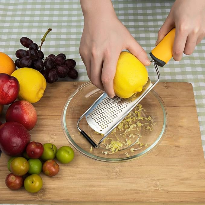 - Handy to Use: Each adult can grate the hardest cheese into fluff without pressure. The zester’s handle is made of non-slip material, never slip in use