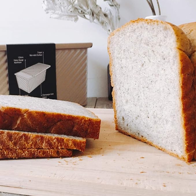 CHEFMADE Pullman Loaf Pan with Lid, 1Lb Dough Capacity Non-Stick Rectangle Corrugated Bread Pan Bakeware, Toast Mold with Cover for Oven Baking Cakes, Breads and Meatloaf (Champagne Gold)