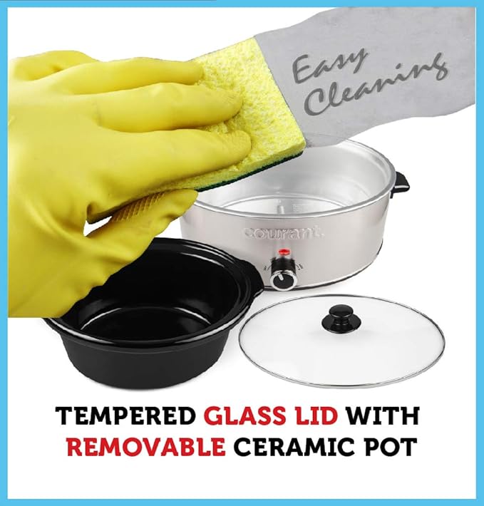 Courant Oval Slow Cooker Crock, with Easy Options 7 Quart Dishwasher Safe Pot, Stainless Steel