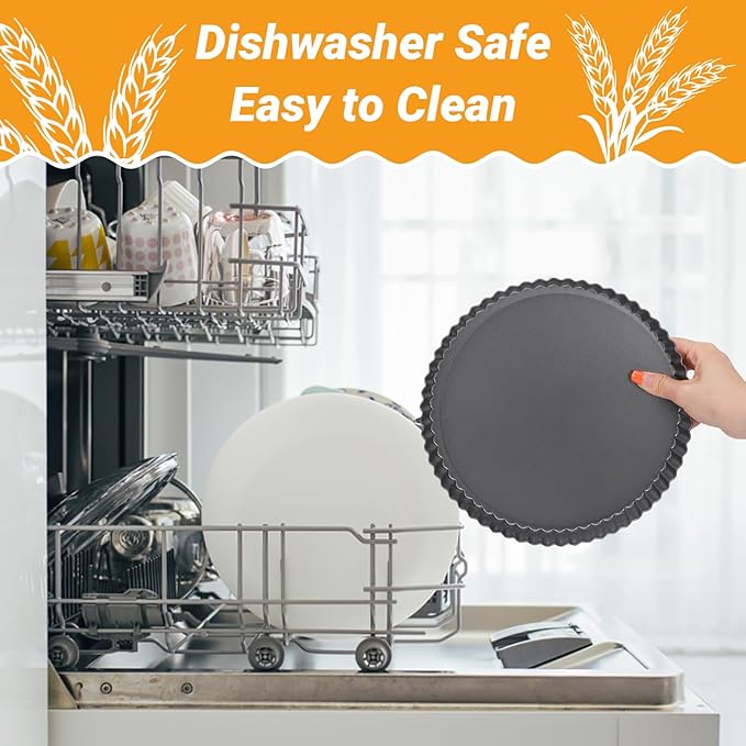 - Effective Non-stick Coating --- The pie pan is equipped with a premium non-stick coating that minimizes food and grease adhesion. This helps maintain the appearance of your baked goods while making cleanup a breeze. For optimal non-stick performance, applying a light coat of cooking oil or spray to the pan before use is recommended.