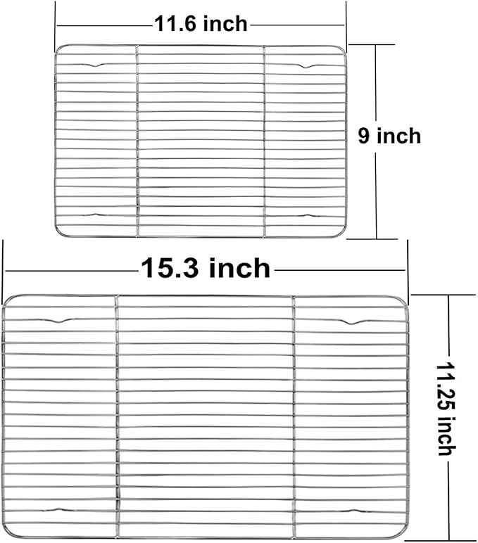 - 2 SIZE - 2 sizes, Large: 15.3ββΓ11.25ββΓ0.6ββ, Medium: 11.5ββΓ9ββΓ0.6ββ, Fit common baking sheets or toaster oven pans, The broiling rack is versatile for baking and cooling bacon, cookies, ribs, kabobs, etc.