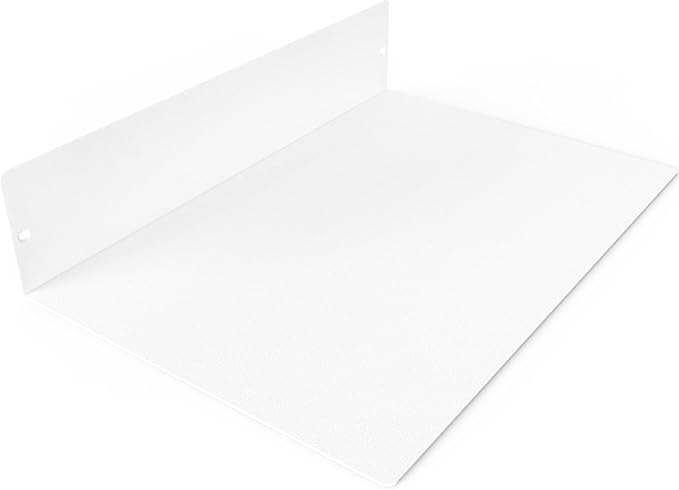 - DIMENSIONS & DETAILS: Measuring 12-inches long x 8-inches in depth, our steel floating shelf is made from 14 gauge raw steel and professionally powder coated white. The weight of the shelf is 2.5 LBS. It's perfect for displaying books, plants, bottles, picture ledges, and retail displays