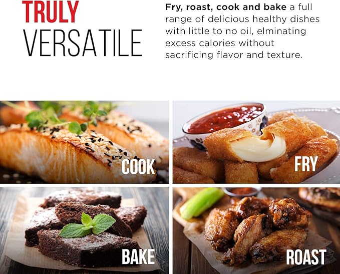 - HEALTHIER FRYING: This air fryer makes healthy fried foods a reality. Temperature range from 200-400 F allows you to cook at your desired temperature, achieving a healthy, crispy, fried finish using at least 98 percent less oil than traditional fryers. Air fry vegetables, pizza, frozen foods and leftovers β this air fryer evenly crisps every inch of your food