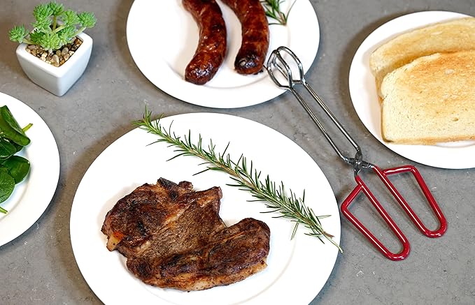 - Lasting Durability: Crafted from a robust metal alloy, these scissor tongs are built to last, providing reliable performance for all your kitchen needs.