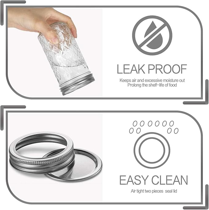 - Set Includes: Case of 20 Mason Jars and Silver Lids.This glass jar set is of superior quality and designed for your convenience