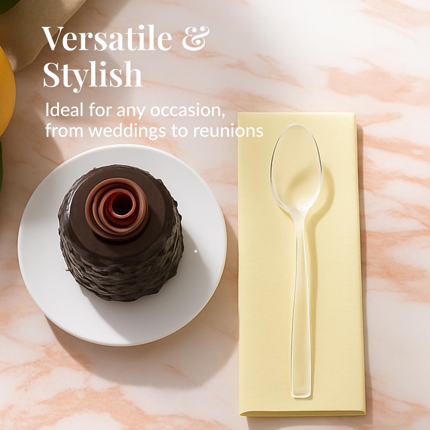 - Crystal Clear 6-Inch Spoons for Catering: Designed with a sleek transparent finish, these heavy duty disposable spoons elevate table settings at weddings, banquets, casual gatherings and dinners
