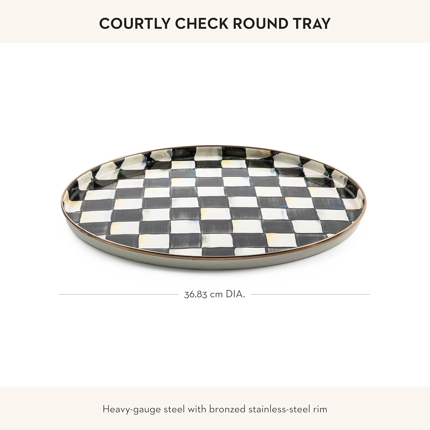 MACKENZIE-CHILDS Enamel Round Tray, Unique Serving Platter for Food and Drinks, Black-and-White Courtly Check