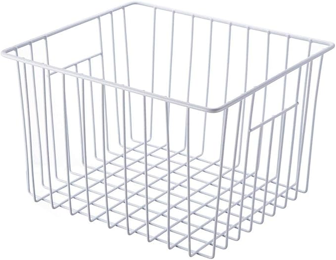 - Durable. Wire grid made of sturdy steel construction, PE coated, rustproof. Put your foods into this basket and stack them, you will find this bin a great organization tool of the freezer shelves, strong recommendation for your freezer. Also strong enough to hold household items like video games, toys, lotions, bath soaps, shampoos, conditioners, linens, towels, laundry needs, craft or school supplies, makeup and beauty supplies and more.