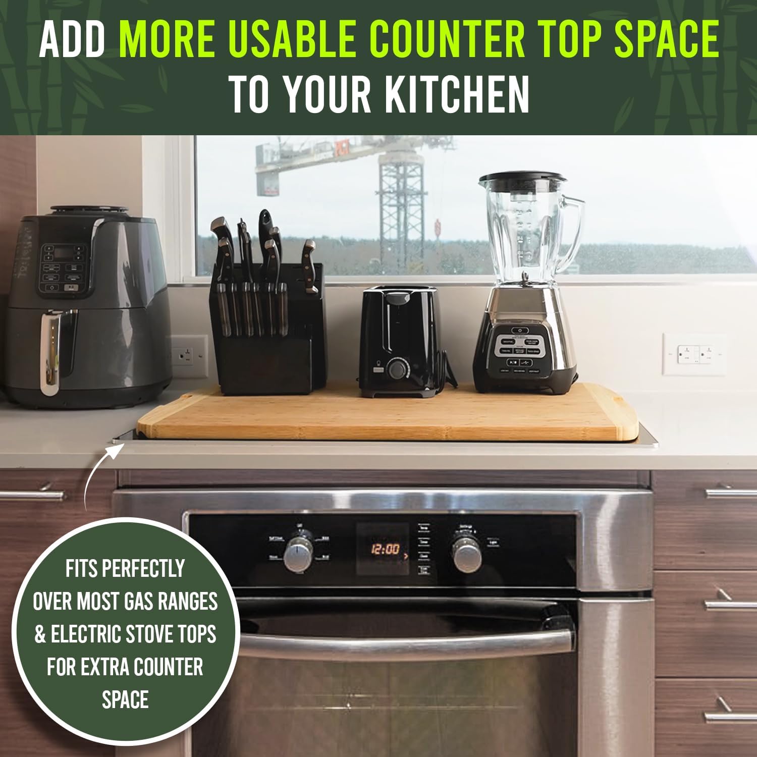 - CUTTING BOARD + STOVETOP COVER – Transforms unused stovetop into extra counter space in seconds. Perfect for small kitchens, RVs, and apartments – adds function and beauty to your kitchen.