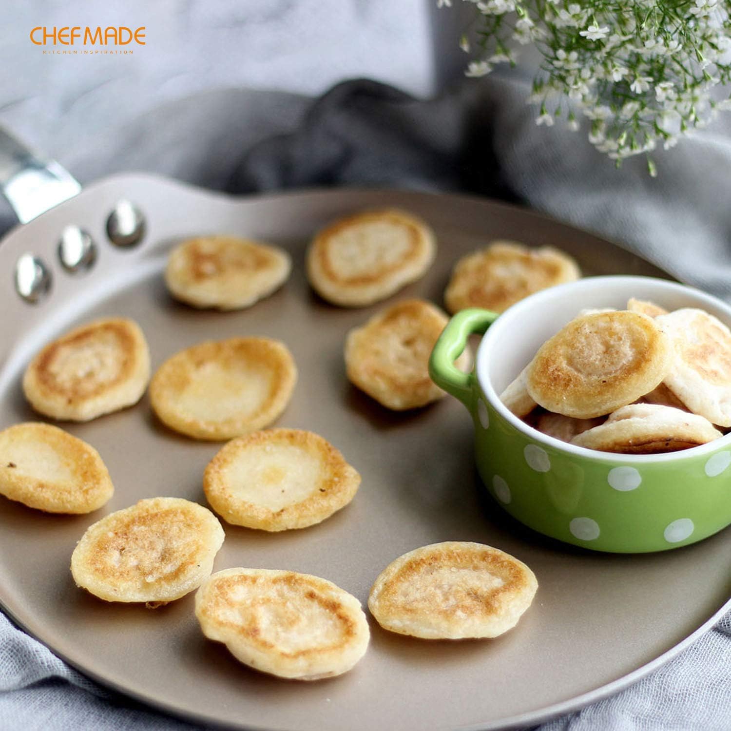 CHEFMADE Crepe Pan with Bamboo Spreader, 8-Inch Non-Stick Pancake Pan with Insulating Silicone Handle for Gas, Induction, Electric Cooker (Champagne Gold)