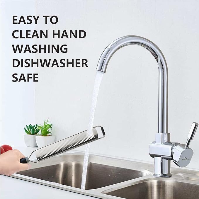 - Convenient Storage: The zester grater comes with a plastic protective cover to keep the blade safe and sharp. Additionally, the black handle features a hanging hole, allowing for easy storage whether hung on the wall or placed in a drawer.Dishwasher safe.