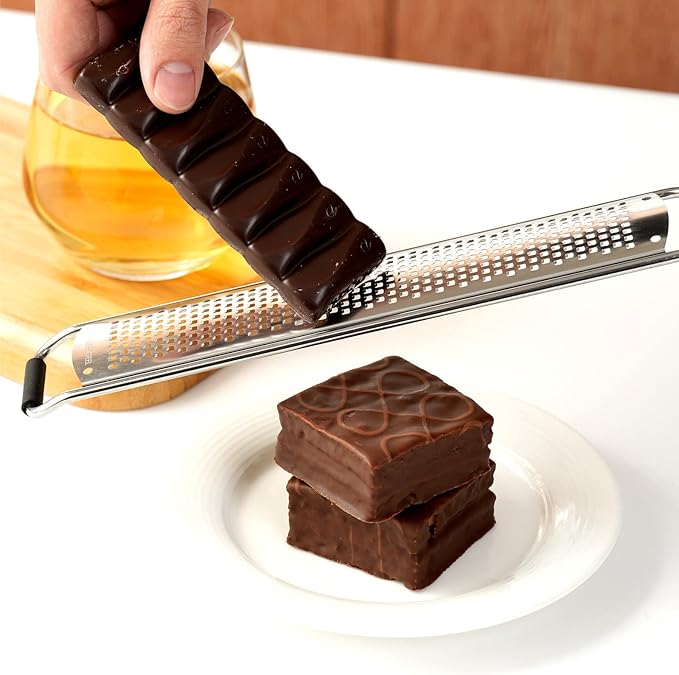 - Perfect Size: The blade measures approximately 9.7 inches in length and 1.77 inches in width, while the total length of the zester grater is 14.3 inches. Its extra-long and narrow design provides precise control and allows you to grate ingredients with ease.