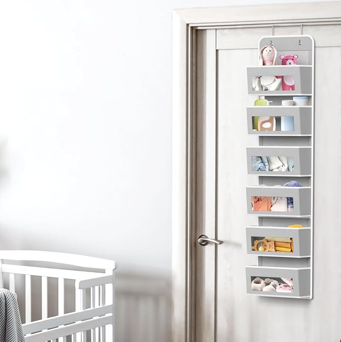 SIMPLE HOUSEWARE 6 Clear Window Pocket Over Closet Door Storage Hanging Organizer for Bedroom, Bathroom, Pantry, Gay